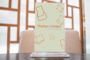 Plastic brochure holders have been specially designed for the display of information, ranging from notices and information to price menus, cards, and point-of-sale materials. A single sheet of material is held in place by a clear overlay for durability and protection. The main intention behind using a plastic holder is to present a streamlined and neat appearance to your customers. Nobody wants to search for a product brochure from among a pile of other documents at the reception desk. Sometimes these materials might fall over, causing an awkward situation as you can't find the intended brochure right away and have to search for it.